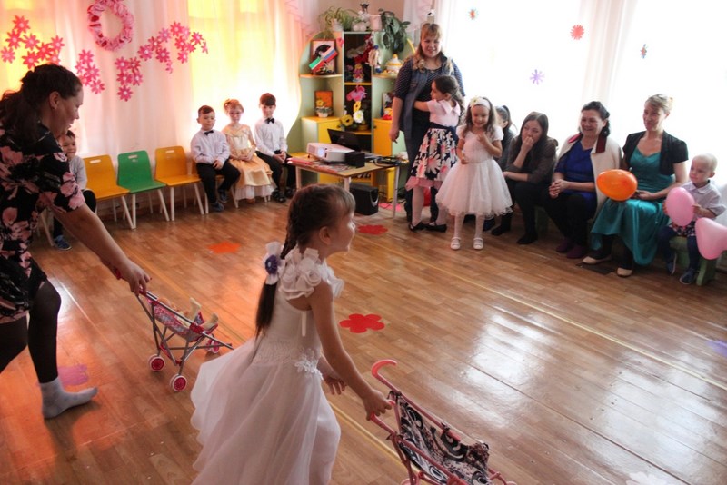 На празднике присутствовали гости: мамы, бабушки, сестры, сотрудники детского сада. Утренник прошел в торжественной, радостной атмосфере, в виде яркого музыкального представления. Воспитанники очень порадовали своими творческими выступлениями: актерским мастерством, исполнялись трогательные и душевные песни, заводные танцы. Дети показали костюмированное представление-сценка «Женский день». Также в гости к ребятам заглянула и Баба-яга, которая хитрым способом хотела утащить у детей сладкий пирог. Но у нее ничего не получилось. В конце мероприятия повар угостила всех ребят сладким пирогом.