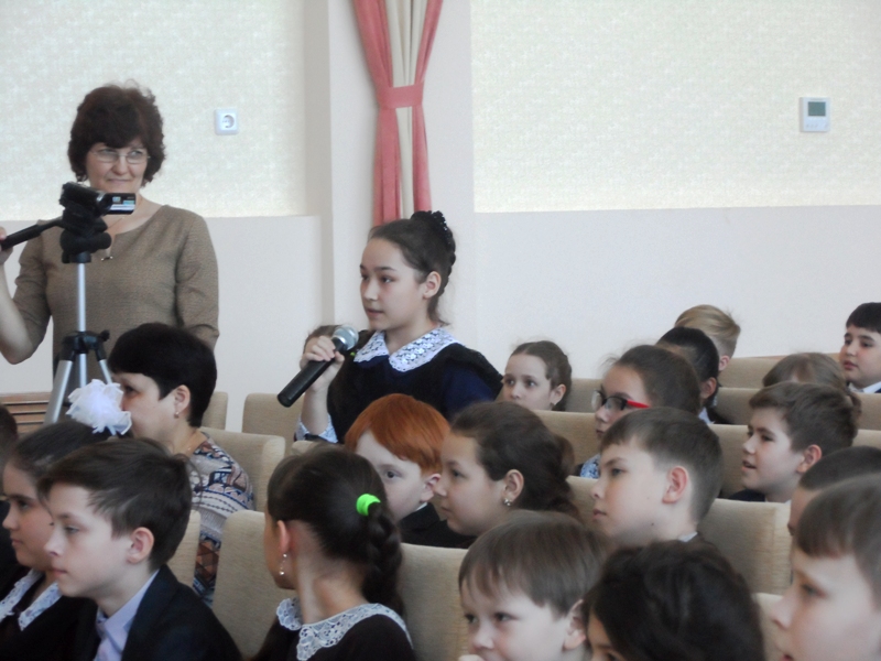 Первая встреча для учащихся 4 «Б», 4«В» школы №1, 4 класса школы №4. Вторая – для 5 «А» школы №3, 5 «Б» школы №1, 5 класса гимназии №1. Для детей, не избалованных такими встречами, это было настоящее событие! Встреча прошла в удивительно теплой обстановке. Час пролетел незаметно. С неподдельным интересом и вниманием слушали ребята «живого» писателя, ее рассказ о своем творчестве. Разговор получился живой и неформальный: ребят интересовало все — о чем Юля Ивлиева мечтала в детстве, кто ее любимый писатель и о чем мечтает сейчас. Вопросы ребят к писателю были и такие: «Нравится ли вам быть писателем?», «Что лучше: писать для детей или для взрослых?», «Давно ли Вы начали писать сказки?», «Сколько книг вышло? и т.д. В свою очередь ребята приготовили ей сюрприз. Садыкова Камилла спела песню, а Крюков Иван рассказал «…откуда берутся сказки». Библиотекарь Марготнова И.А создала буктрейлер на новую ее книгу,