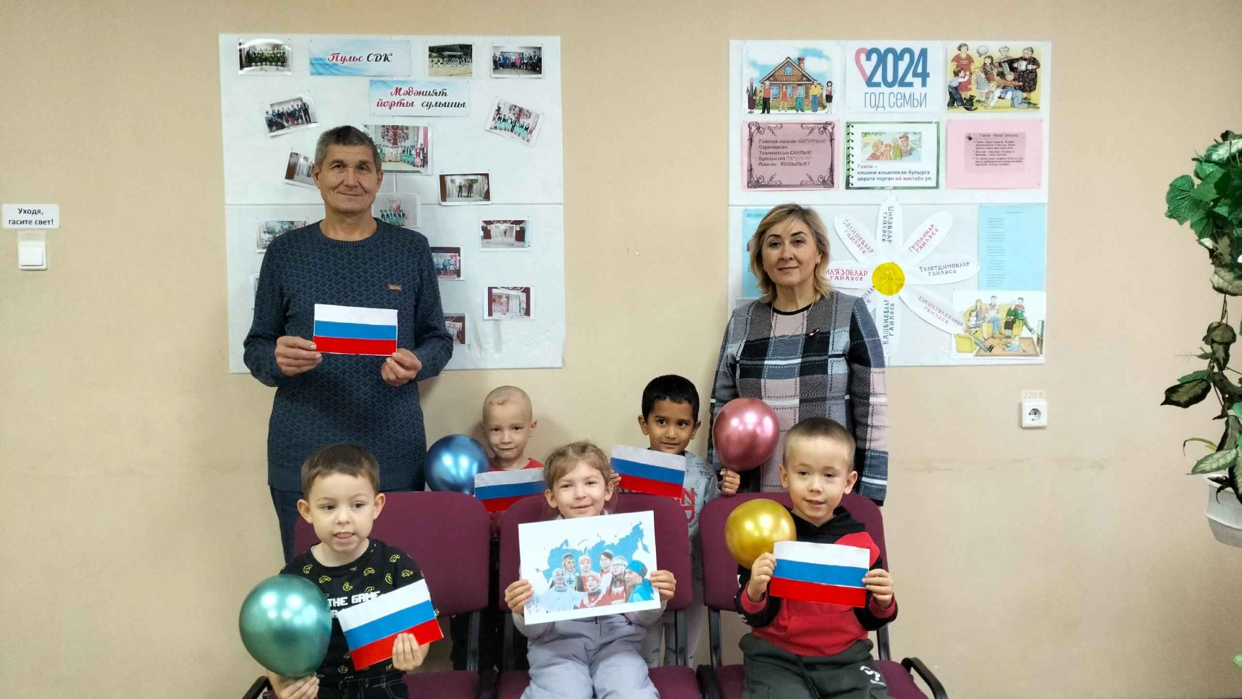 4 ноябрьдә безнең бөтен Россия "Халыклар бердәмлеге көнен" билгеләп үтә. Бу көн хәзерге Россиянең дәүләт бәйрәмнәре арасында аерым урын алып тора. Халыклар бердәмлеге көне-балалар кечкенәдән белергә тиешле бәйрәм. Хәзерге Халыклар бердәмлеге көне-кешеләрне мөһим тарихи вакыйгаларны искә төшерергә генә түгел, ә күпмилләтле ил гражданнарына бердәмлекнең мөһимлеген искә төшерергә дә өнди торган бәйрәм. Бүген Мәдәният йортында балалар бакчасында тәрбияләнүчеләр белән "Бөек Россия - аның көче бердәмлегендә" дигән әдәби сәгать узды. (тәрбиячесе Хәсәнянова Г.М.) Чара барышында балалар бәйрәмнең тарихы белән таныштылар, Россиянең тарихи үткәне турында белделәр, дәүләт символлары турында белемнәрен ныгыттылар. Балалар илебездә яшәүче халыклар белән таныштылар, төсле кәгазьдән Россия флагы ясадылар, Халыклар дуслыгы турында шигырьләр тыңладылар.