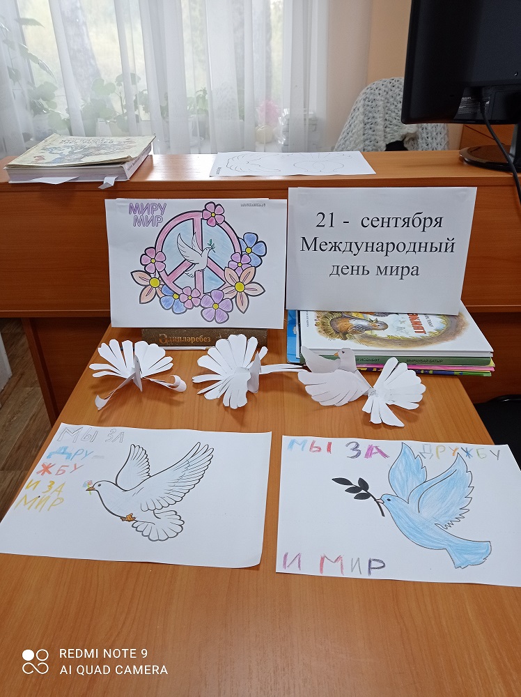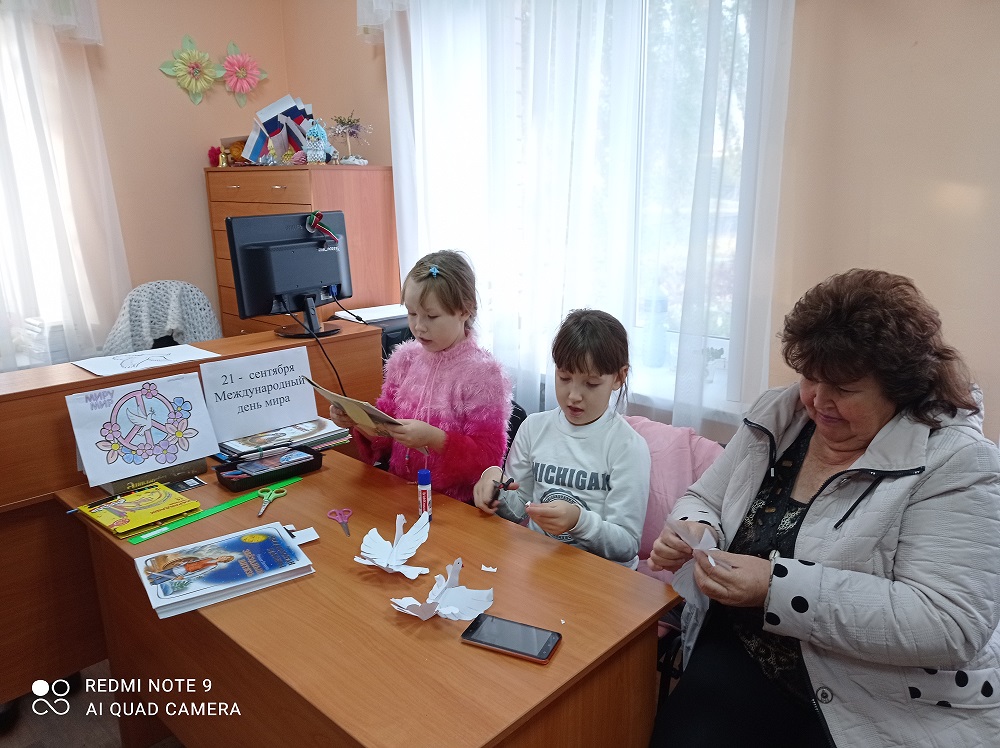 Тойгуҗа авылы китапханәсендә Халыкара тынычлык көне уңаеннан “Тынычлык күгәрчене” дигән осталык сәгате үткәрелде. Балалар кәгазьдән тынычлык күгәрчене ясау белән беррәттән, тынычлык көненә багышланган рәсем дә буядылар һәм үз теләкләрен җиткерделәр. Р. Валиеваның “Йолдызстан батыры” (“Звездный витязь”), В. Даньконың "Кем дөньяда иң газиз?" (“Кто на свете всех родней” ) китапларыннан балачак, тынычлыкка багышланган шигырьләрне укыдылар.