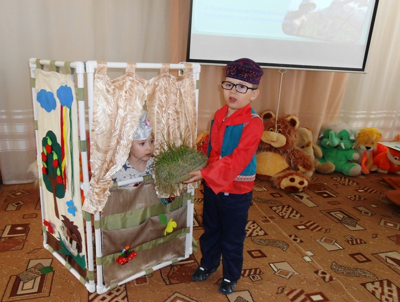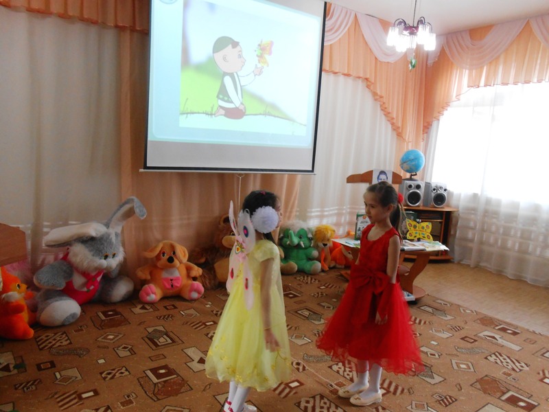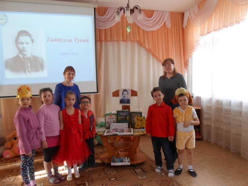 Балалар Г.Тукай шигырьләрен сәхнәләштерделәр. “Бала белән күбәләк”неГалиева Әдилә һәм Шакирова Сәйдә, “Гали белән кәҗә”не Шәяхмәтов Динар һәм Гайсова Саша, “Кызыклы шәкерт”неГригорьев Радмир һәм Корбанов Тимур, “Эш беткәч уйнарга ярый” шигырен Иванова Катя һәм Фәйзуллина Эмилия сәхнәләштерделәр. 14 нче группа балалары уйнаган “Су анасы” әкиятенең видеоязмасын карау,кечкенә артистларның осталыгына сокландырды.