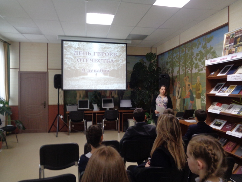 Китапханәче Долгова М.А. 1нче мәктәпнең 7нче сыйныф укучыларына бәйрәмнең һәм георгий лентасының килеп чыгышы, 1812нче елгы Ватан сугышы һәм ХХ гасыр каһарманнары турында сөйләде. Документаль һәм әдәби фильмнардан өзекләр, истәлекләр һәм фотографияләр карау балаларга материалны үзләштерүдә зур ярдәм булды.Укучылар, очрашу ахырында, батырлыкка һәрчак урын бар дигән нәтиҗә ясадылар.