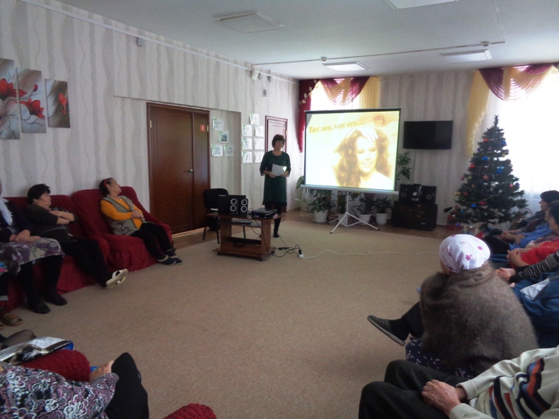 11 нче декабрьдә китапханәчеләр “Саулык” социаль ярдәм үзәгендә Алла Пугачёвага багышланган «Так же как все» исемле музыкаль программа уздырдылар.