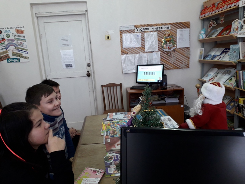 Балалар әкиятләрдән төзелгән интелектуаль уенда катнаштылар. Яңа ел бәйрәмен, кыш фасылын чагылдырган күргәзмәдәге китаплардан өзекләр укып, яңа мәгъүлумат, каникулда укыр өчен китаплар алып таралыштылар. Баллы призлар да балаларга бәйрәм кәефе өстәде.