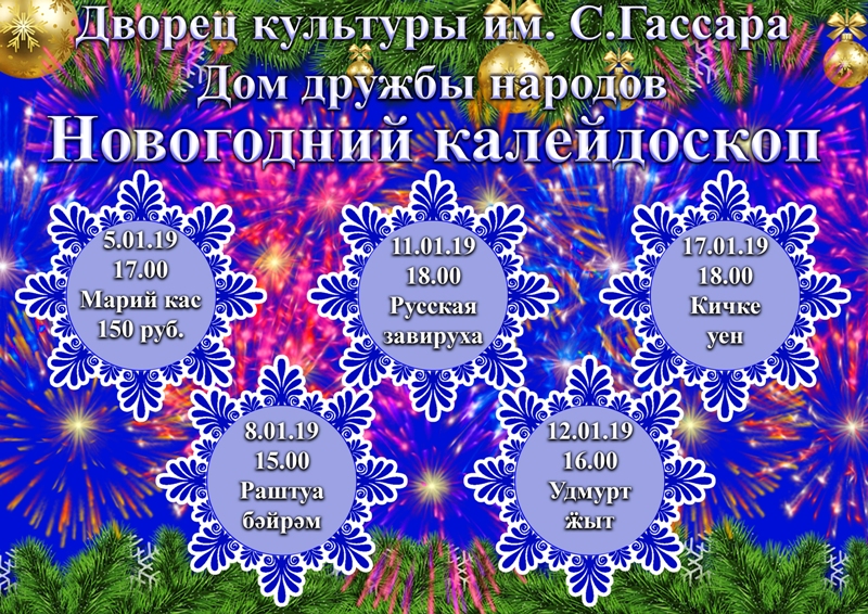 С.Гассар исемендәге Мәдәният сарае һәм Халыклар дуслыгы йорты Яңа ел калейдоскопына чакырып калалар.