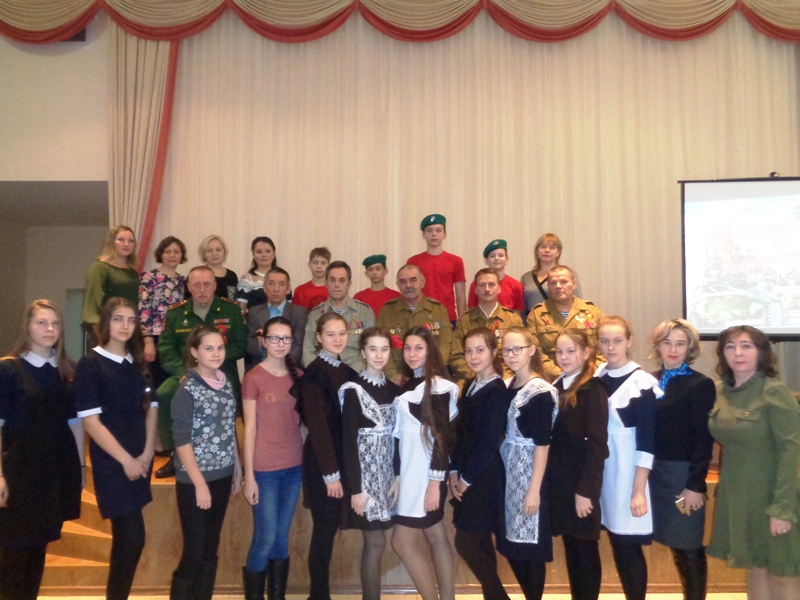 Бу очрашуга интернационалистлар Поспелов Сергей Александрович, Камашев Сергей Михайлович, Анисимов Павел Васильевич, Зырянов Сергей Евдокимович, Орлов Валерий Вениаминович чакырылган иде. Мәдәният идарәсе начальнигы Шиһапова Е. В. сугышчы-интернационалистларга рәхмәт сүзләр җиткерде. ТР Менделеевск районы хәрби комиссары, Әфганстанда сугышчан хәрәкәтләрдә катнашкан Залуженко С. В. балалар алдында чыгыш ясады. Ул барлык катнашучыларга да тыныч күк йөзе теләде. Чөнки ул сугыш турында ишетеп кенә белми. Укучыларны кызыксындырган саннардан һәм кадрлардан соң, укучылар әфганчыларның чыгышларын бик теләп тыңладылар һәм үзләрен кызыксындырган сорауларын бирделәр. Кунаклар үзләре, тормыш юллары, хәрби хәрәкәтләрдә катнашулары турында сөйләделәр. Әфганстанга алар төрле елларда эләккән һәм төрле частьләрдә хезмәт иткән булсалар да истәлекләре бер берсенә охшаш. Очрашуда катнашучылар Әфганстанда һәлак булганнарны бер минут тынлык белән искә алдылар. Очрашу тәмамланганда яшь армиячеләр ветераннарга чәчәкләр тапшырдылар һәм истәлеккә фотога төштеләр.