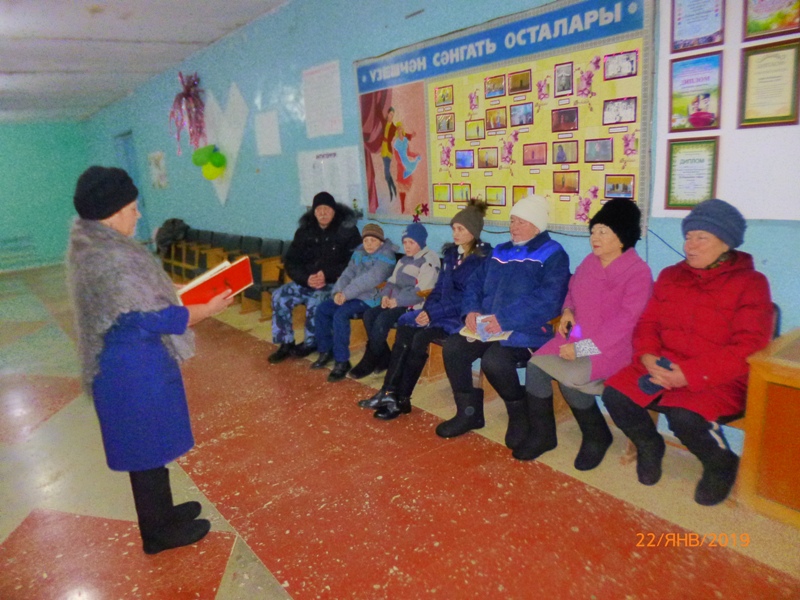 Китапханəче Ямалутдинова Фирзəвия чарага килүчелəргə Бөек Ватан сугышында Ленинград шəһəренеӊ фашистлар чолганышында калуы турында сөйлəде, Н.Ходзаныӊ «Дорога жизни» китабыннан документаль хикəялəр укыды. Ульданова Гөлсинə апа безнеӊ авылда туган, сугыш вакытында Ленинград блокадасында ачтан үлгəн авылдашыбыз турында сөйлəде.