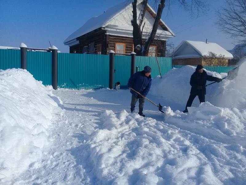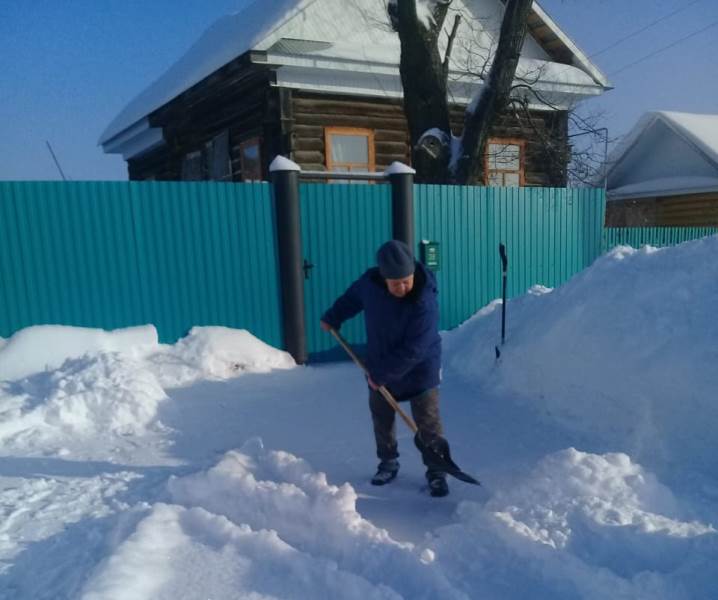 6 гыйнвар, 2019 ел. Кокшан авыл клубы хезмәткәрләре авылдашлары Роза Семеновнага ярдәм итеп, ишегалды һәм капка төпләрендәге карны көрәделәр.