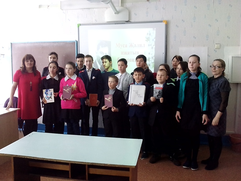 Укучылар ике командага бүленеп шагыйрьнең иҗатын белүдә ярыштылар. Балаларга Муса Җәлилгә багышланган китап күргәзмәсе тәкъдим ителде. Муса Җәлилнең җырлары, шигырьләре үлемсез. Җәлил үлсә дә, ул мәңге безнең күңелләребездә калыр. Аның әсәрләре безне киләчәккә озата барырлар.