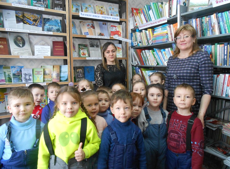 Китапханәче сабыйларны китапханә кагыйдәләре, күргәзмәләр, балалар өчен китаплар белән таныштырды. Татар каһарман шагыйре М.Җәлил туган көн буларак, әдипнең балачагы турында хикәяләр, кечкенәләр өчен язылган шигырьләретыңланды, “Кызыл ромашка” анимацион мультфильмы каралды. Балалар үзләре дә ятлаган шигырьләрен сөйләделәр. Соңыннан, бакчада бергәләп уку өчен, китаплар сайладылар.