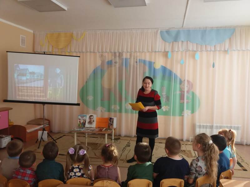 Иске Гришкин авылы китапханәчесе Бармакова Г.И. «Ромашка” бакчасы балаларын герой – шагыйрь Муса Җәлил иҗаты белән таныштырды.