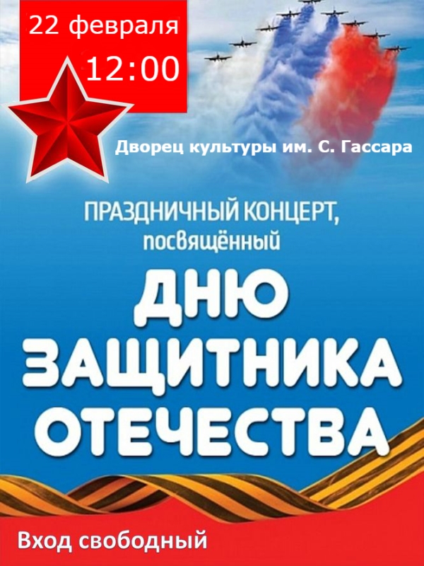 22 февраль көнне сәгать 12.00дә С.Гассар исемендәге мәдәният сараенда Ватанны саклаучылар көненә багышланган бәйрәм концерты узачак. Теләүчеләрне көтеп калабыз. Керү буш.