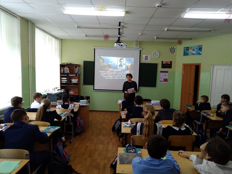 21 февраль көнне Фируза Габдрахманова 1нче урта мәктәбендә 5 сыйныф балалары белән Муса Җәлилгә багышланган әдәби сәгать үткәрде. Фируза Габдрахманова балаларны Муса Җәлилнең кыскача биографиясе белән таныштырды. Балалар шагыйрьнең концлагерьда тоткынлыкта үткәргән вакытта, бердәнбер коралы – аның шигырьләре булуын белделәр.