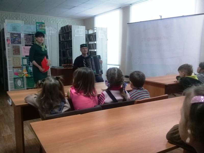 Чараның кунаклары – «Чулпан» балалар бакчасында тәрбияләнүче нәни дусларыбыз булды. (тәрбияче Хәсәнянова Г. М.). Китапханәдә «21 февраль – Халыкара туган тел көне» күргәзмәсе оештырылды. Китапханәче Яраханова Рузалия балаларны бәйрәмнең тарихы белән таныштырды; Татарстанда төрле милләт халыклары яши, һәрберсенең туган теле бар, дип сөйләде; балалар фольклоры әсәрләрен укыды. Балалар әкиятләрдән тыш, бәет, риваятьләр, мәкальләр һәм әйтемнәр дә булуын белделәр. Балалар рәхәтләнеп табышмаклар чиштеләр, туган тел турында мәкальләр һәм әйтемнәр искә төшерделәр. «Түбәтәй» татар халык уенында катнаштылар. Песәй авыл мәдәният йорты директоры Рафаэль Кәбиров башкаруында баянда татар җырларына көйләр тыңладылар. Азамат Тазетдинов, Лиана Бурансова һәм Азалия Кашбиева башкаруында шигырьләр һәм җырлар яңгырады. Чара «Туган тел» җырын башкару һәм «Кем көчле», «Камыр батыр» әкиятләренә багышланган мультфильмнар карау белән тәмамланды.