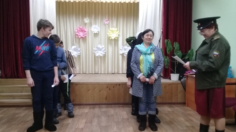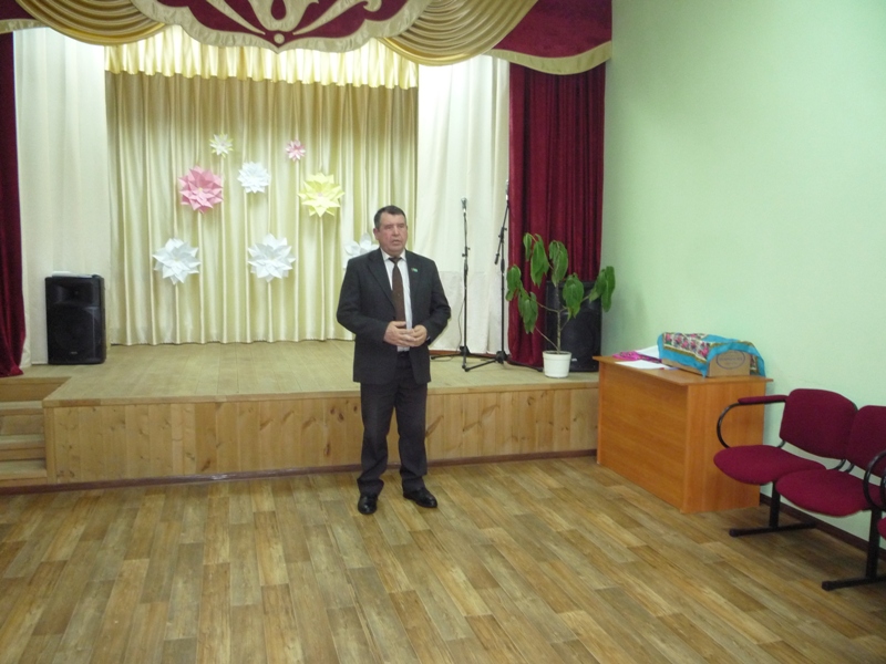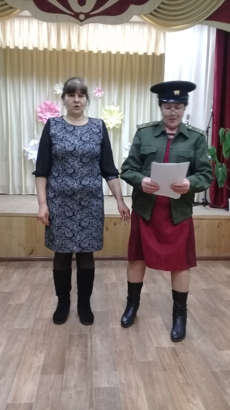 Авыл җирлеге башлыгы Сафин Р.А. залдагы ир-егетләрне бәйрәм белән тәбрикләде. Сафина А..А. “Мәтрүшкәләр” җыры, Зиннатуллина Р.М. “Солдат хаты“ дигән нәфис сүз белән залдагыларга бәйрәм котлауларын ирештерделәр. Ял кичәсе армия тормышына кагылышлы сораулар, төрле уеннар , җыр, бию белән бик күңелле үтте.