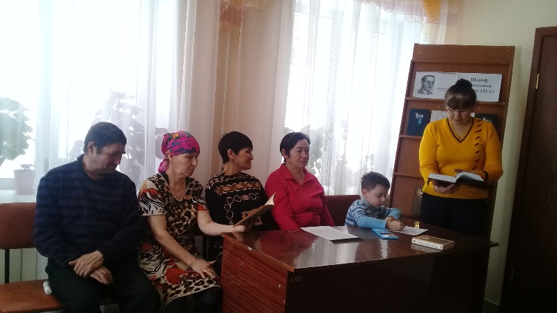 Язучының тормышы, иҗаты белән танышкач, китап укучылар аның бүгенге көндә дә актуальлеген югалтмаган ана һәм бала арасындагы мөнәсәбәтләрне нечкә психологик алымнар белән сурәтләгән “Буранда“ хикәясен тулысынча укыдылар. Ана һәм бала турында мәкальләр уку, “Әнкәмнең догалары“ җырын да башкару бу теманы тагын да тулыландырды. Китапханәче “Акчарлаклар” повестенең эчтәлеге белән кыскача таныштыргач, бу әсәрнең “Мин сине көтәрмен” бүлеген укыдылар һәм шушы повесть буенча куелган спектакльгә Х. Вәлиуллинның Р.Әхмәтҗанов шигыренә язылган “Акчарлаклар“ җырын Сафина А.А. башкаруында тыңладылар. Драма әсәрләреннән, “Хаҗи әфәнде өйләнә” комедиясенең эчтәлеген искә тәшереп, Галимә-Хаҗи диалогын укыдылар.