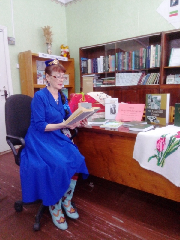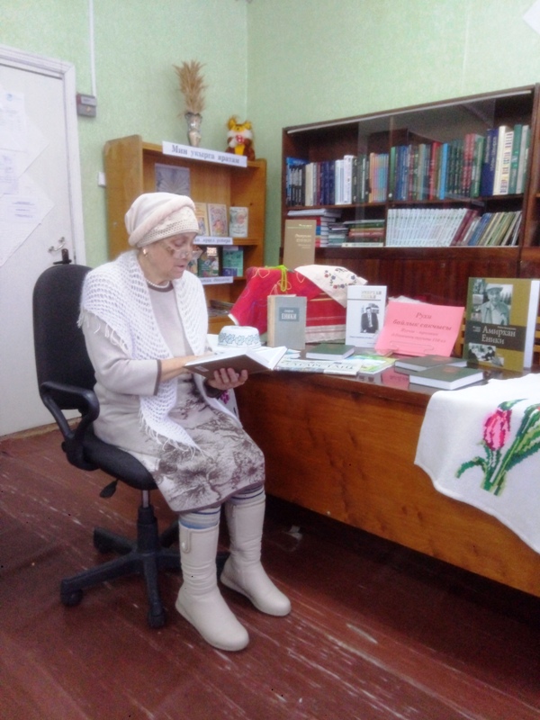 Кичәдә китапханәче Ф.Башарова кыскача язучының тормыш юлы белән таныштырып үтте, китап күргәзмәсенә күзәтү ясады. Аннары китапханә укучылары татар халык моңнары астында язучының милли рух сирпелеп торган, кешеләр язмышы һәм алар арасындагы мөнәсәбәтләр турында гаҗәеп бай, итагатьле тел белән язылган «Әйтелмәгән васыять», «Рәшә», «Картлар», «Кояш баер алдыннан», «Саз чәчәге», «Без дә солдатлар идек» әсәрләреннән өзекләр, шаян «Бүрек» хикәясен тулысынча укыдылар.