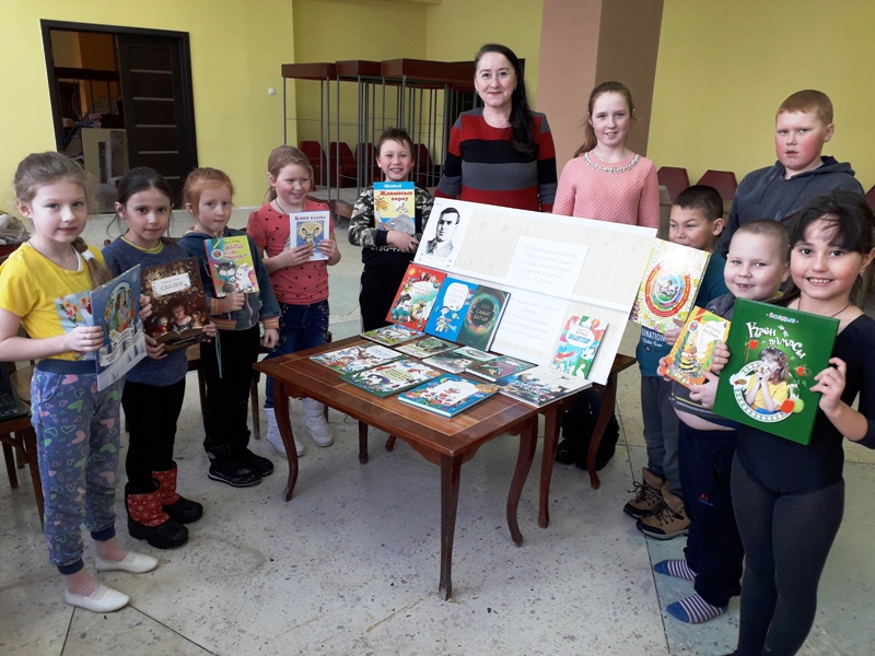 Китапханәче Абдулла Алиш иҗаты турында сөйләде. А.Алиш премиясе лауреатлары һәм аларның күргәзмәгә куелган китаплары белән таныштырды. Бергәләп А.Алиш премиясе лауреатлары Ф.Яруллинның “Яз кайда кышлый” “Где зимует весна?”исемле әкиятен ике телдә укыдык, әлеге китаптагы кызыклы биремнәргә җаваплар таптык, Й.Шәрәпованың “Каен алмасы”, Х.Халиковның “Ничек тизрәк үсәсе?” китапларыннан шигырьләр укыдык.