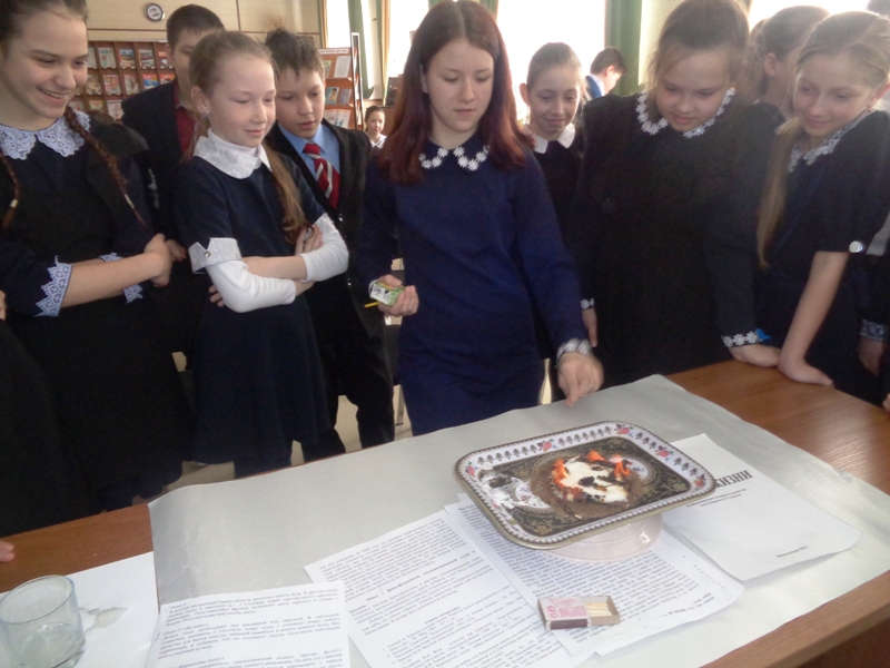 Балалар иң танылган химик элементларның үзлекләре, аларның кеше тормышында әһәмияте белән таныштылар, химик тәҗрибәләр үткәрүдә катнаштылар. Шулай ук балалар бик теләп табышмакларга җавап бирделәр, алтын, тимер һәм су турында мәкальләр һәм әйтемнәр әйттеләр.