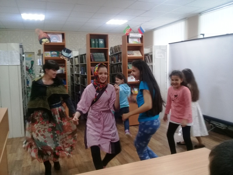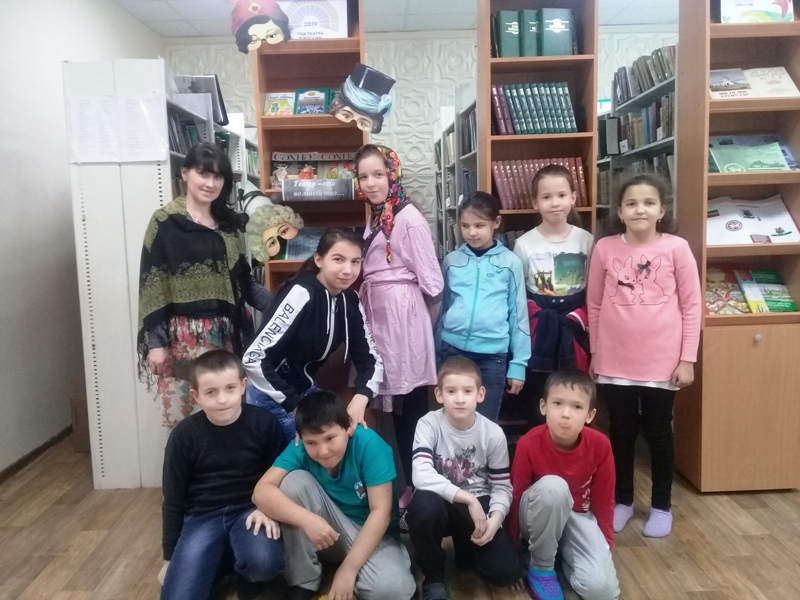 Китапханәче балаларга театрның тарихы, кызыклы фактлар турында сөйләде. Балалар бик теләп «Без театрда», «Әкият белгечләре» конкурсларында һәм уеннарында катнаштылар, «Игътибарлы укучы» викторинасы сорауларына җавап бирделәр. Алдан әзерләнгән музыкаль-театральләштерелгән тамашаны күрсәттеләр. Театр дөньясына сәяхәтебез кызыклы һәм күңелле тәмамланды.
