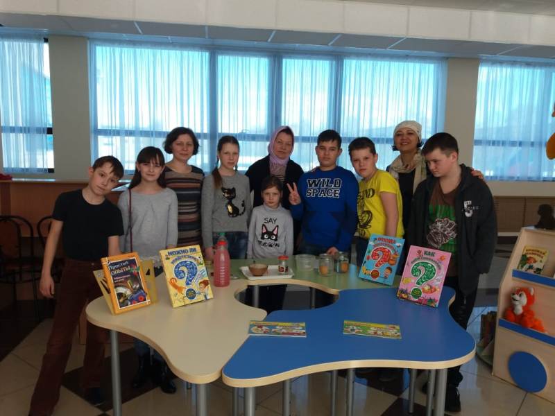 Тәҗрибәләр К. С. Аниашвили, Ф. Рабиза, Т. Тит китапларында тасвирланган эшләр нигезендә үткәрелде. Китапханәче Назарова Е. А., балалар белән бергә, гади матдәләр һәм предметлар: су, сода, уксус, йомырка, буяулар һәм һава шарлары кулланып,тәҗрибәләр ясады. Тәҗрибәләр сәгатемавыктыргыч һәм җанлы үтте.