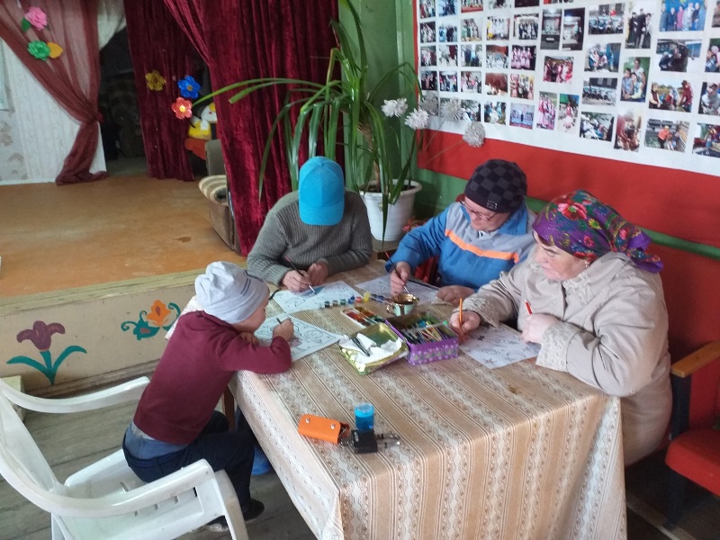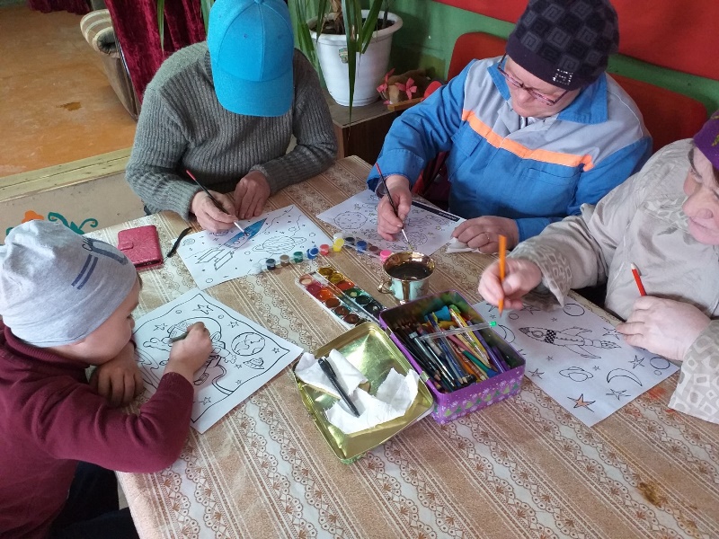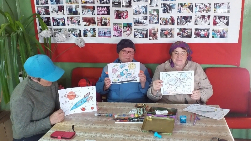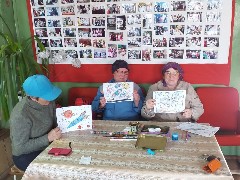 Татар Тәкәше авыл клубында буяу, пумала алып апаларыбыз кечкенә чакларын искә алдылар, космоска багышланган рәсемнәр ясадылар. Клуб мөдире Мусина А.З аларга Ю.Гагарин, космонавтика үсешенең тарихы, йолдызлар, йолдызлык турында сөйләде.