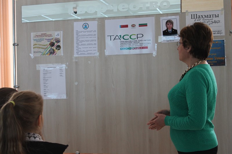 16 апрель көнне Халыклар дуслыгы йортында 1 нче урта мәктәпнең 1 «В» сыйныф укучылары өчен (җит. Т. В. Мөхәммәдиева) ТАССР төзелүнең 100 еллыгын бәйрәм итүгә әзерлек һәм аны үткәрү чаралары планын тормышка ашыру кысаларында тематик стендлар кулланып әңгәмә үткәрелде.