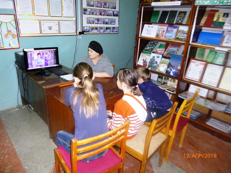 Китапханəче беренче космонавт Ю.Гагарин турында əӊгəмə үткəрде. Балалар «Космоста яшəү» дигəн презентацияне бик яратып карадылар. Космоста яшьлəрнеӊ биттəн агып төшмичə, җыелып торуы; космонавтларныӊ ничек юуынулары, ашаулары, йоклаулары, ачык космоска чыгулары, скафандрныӊ төзелеше аларга зур яӊалык булды.