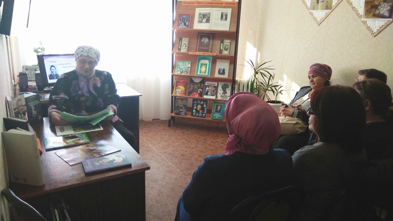 “Ядкарь” әдәби берләшмәсенә йөрүчеләр кич белән китапханәгә җыелдылар. Китапханәче Гөлназ Хафизовататар театры тарихы, Татарстандагы театрлар, күренекле шәхесләр турында мәгълүмат бирде, китап күргәзмәләре белән таныштырды. Гөлниса Евдокимова үзенең язмаларын тыңлаучылар хозурына тәкъдим итте. Фәимә Фәхриева бәраәт кичәсе турында файдалы мәгълүмат белән таныштырды. “Беренче театр”, “Хаҗи әфәнде өйләнә” спектакльләреннән өзекләр карап, үзара фикер алышып, җылы аралашып, китапханә киче бик матур узып китте.