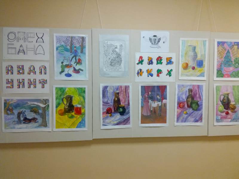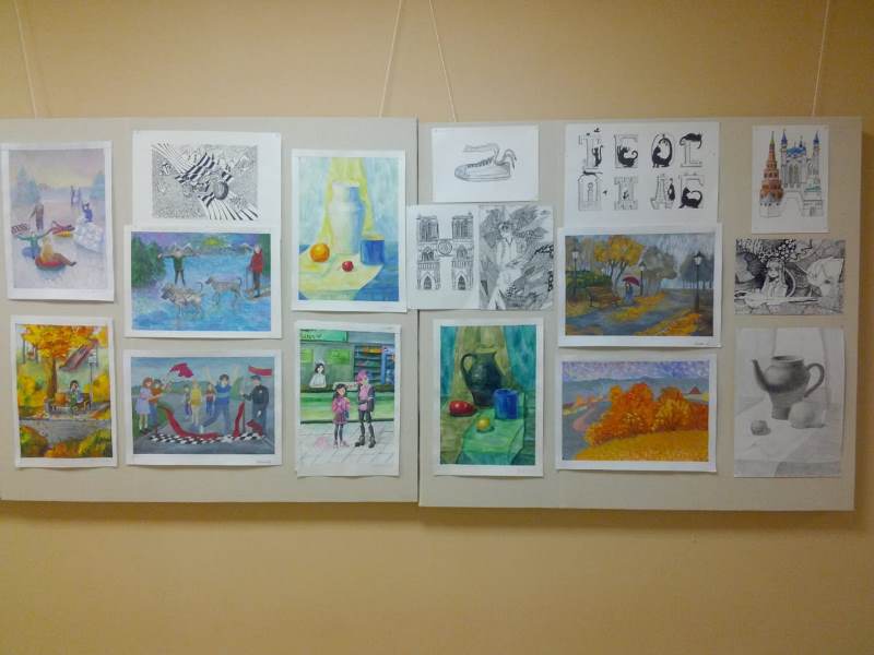 Балалар сәнгать мәктәбенең 2 нче катында сынлы сәнгать бүлегенең 3 нче сыйныф укучылары эшләре күргәзмәсе уза.