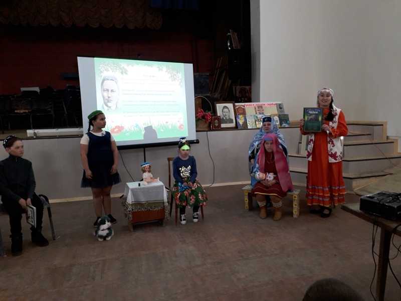 Театр түгәрәгенә йөруче балалар Г.Тукайның “Сабыйга”, “Эшкә өндәү”, “Туган авыл”, “Бэхетле бала”, “Кызыклы шәкерт”, “Шаян песи” шигырьләрен сәхнәләштереп уйнап күрсәттеләр. Габдулла Тукайның китаплары, бай әдәби мирасы белән танышу, бергәләшеп “Туган тел” җырын җырлау һәммә бездә дә туган телебезне ярату, шагыйрьнең иҗатына хөрмәт, горурлык хисләре уятты.