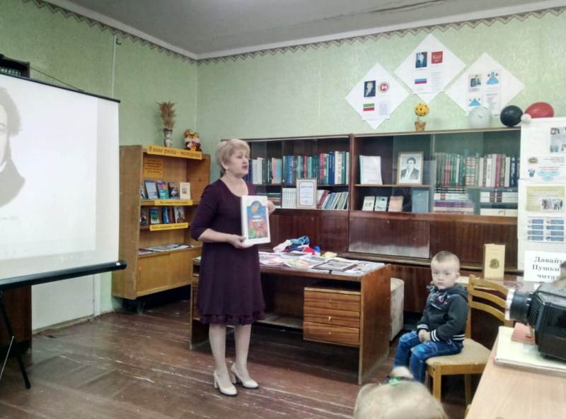 Акция кысаларында балалар өчен “Давайте Пушкина читать” дигән әдәби сәгать үткәрелде. Китапханәче балаларга язучының балачагы турында сөйләде, әкиятләре белән таныштырды, “Сказка о мертвой царевне и о семи богатырях” әкияте буенча эшләнгән мультфильм карарга тәкъдим итте, “Сказка о рыбаке и рыбке” әкиятен кычкырып укыды. Соңыннан балалар укыганнар турында фикерләрен белдерделәр. Чара рус телендә үткәрелде.