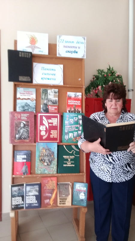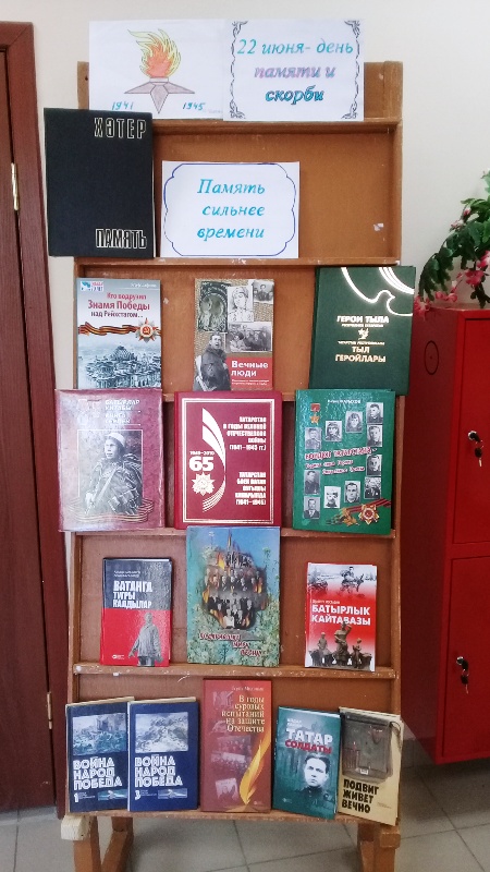 20-22 нче июнь көннәрендә Тойгуҗа авылы китапханәсе китап укучылары Бөек Ватан сугышы башланган көн - хәтер һәм кайгы көне уңаеннан оештырылган “Хәтер вакыттан көчлерәк” дип аталган китап күргәзмәсе белән таныштылар.