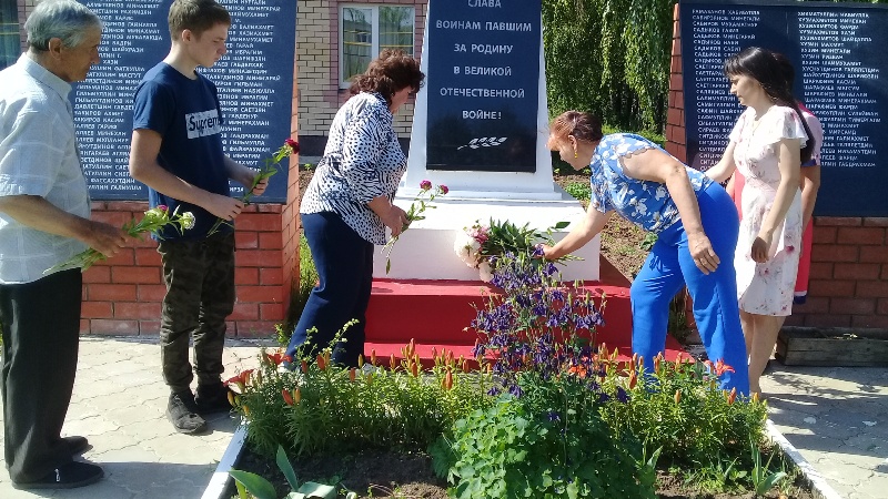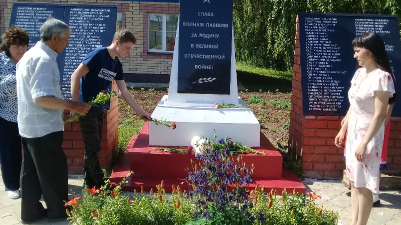 Ә 22 нче июнь көнне сугышта һәлак булган, сугыштан кайтып безнең арада яшәп бакыйлыкка күчкән авылдашларыбызны искә алып һәйкәлгә чәчәкләр куйдылар.