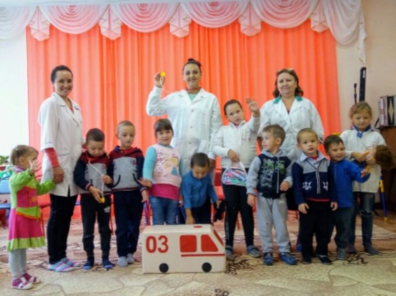 Балалар табиб, авыру, ашыгыч ярдәм йөртүче ролен үзләрендә сынап карадылар. Шулай ук интерактив әңгәмә үткәрелде, анда балалар төрле һөнәр белгечлекләре турында, көн режимының нәрсә булуын, сәламәт туклану турында, прививкалар ясау һәм гигиена кагыйдәләрен үтәү турында белемнәрен күрсәттеләр. Балаларның актив катнашуы һәм уен белән кызыксынуы бик күп уңай хис-кичерешләр һәм яңа белемнәр алырга мөмкинлек бирде.