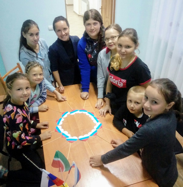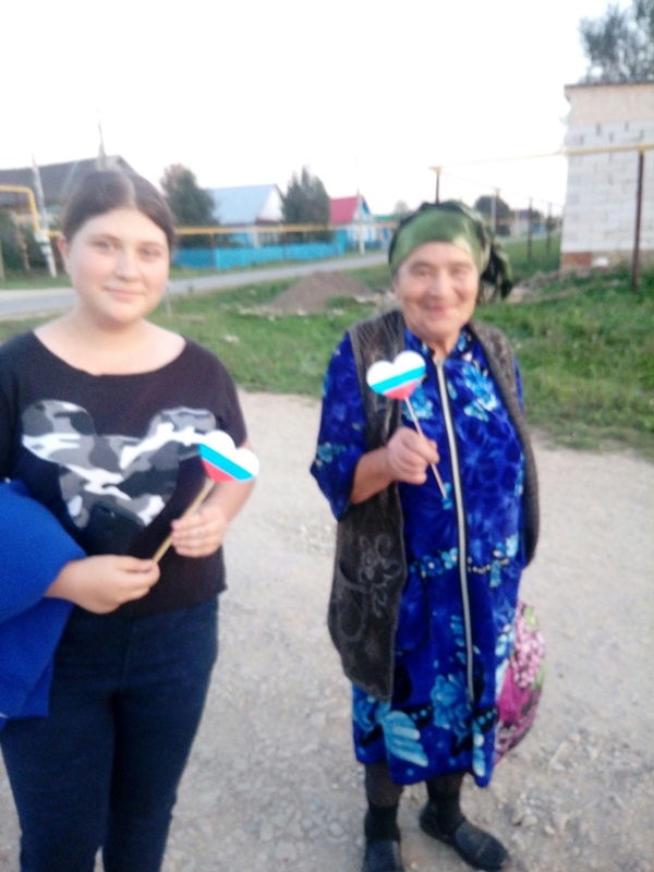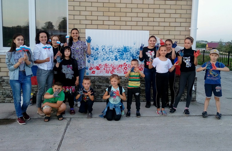 Акция кысаларында Мәдәният йорты территориясендә зур ак киндер урнаштырылган иде, һәм теләге булган һәркем аның өслегендә Россия триколоры сызыгын үз куллары белән ясый алды. Нәтиҗәдә, авыл халкы буяулар ярдәмендә илнең төп символы - байрагын ясадылар. Моннан тыш, акция кысаларында, волонтерлар йөрәк формасында ясалган Россия триколорын тараттылар.