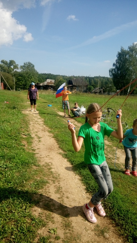 Яңа Кокшан клубы мөдире һәм Китапханәче, Россия флагына багышланган бәйрәм уңаеннан Россия флагы белән велоузыш оештырдылар, шулай ук патриотик сәгать һәм конкурслар үткәрелде. Велопробег бистәнең үзәк өлеше буйлап урнашкан иде. Узып баручылар барысы да кулларын селтәп һәм шатланып калдылар. Өлкәннәр дә безне хуплап торырга чыктылар.