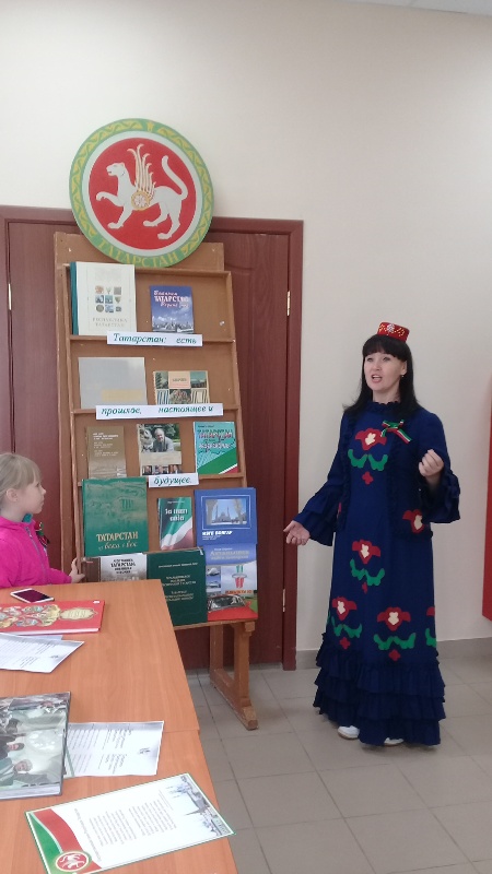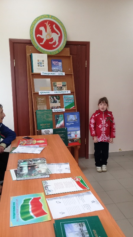 Республиканың гимнын башкарып, бәйрәмне башлап җибәргәч, Татарстан символлары: флаг, герб, гимн турында сөйләштеләр, Татарстан турында язылган китапларны карадылар. Ә Балобанова Р. Һәм аның кызлары Валерия, Вера шигырьләр дә сөйләделәр. Соңыннан бу чарада катнашучылар” “Мин яратам сине, Татарстан“ җырын күмәкләп җырладылар.