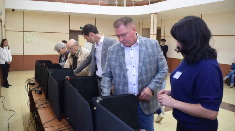Валерий Сергеевич сайлау комиссиясе әгъзалары белән аралашты һәм компьютер техникасын кулланып тавыш бирүнең заманча форматы турында уңай фикерен белдерде.