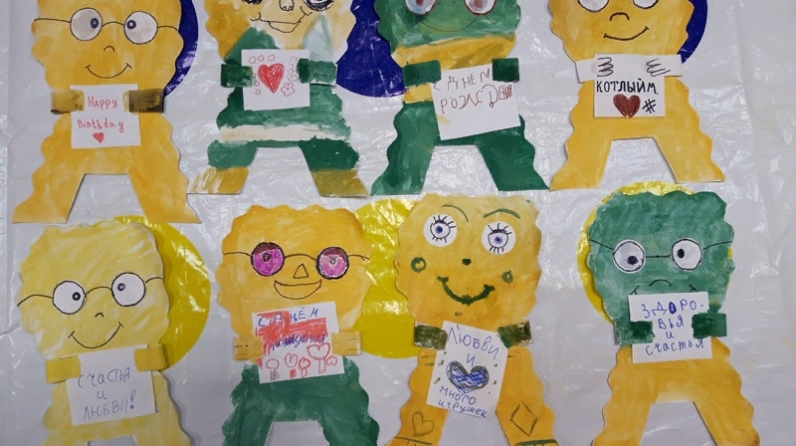 Һәр бала үзенең кызыклы теләкләр белән открыткасын алды.