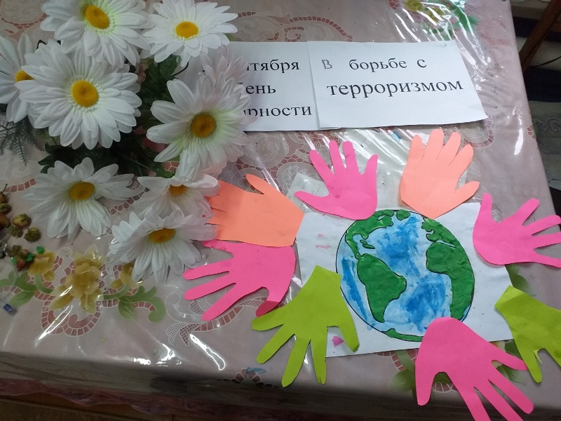 Әлеге көн 2004 елның 1-3 сентябрендә Беслан шәһәрендә булган вакыйгалар бәйле рәвештә оештырыла. Тат тәкәштә “Террорчылык – гасыр җинаяте” балалар белән әңгәмә үткәрдек . “Нәрсә ул терроризм?” фильмын карап, аның буенча фикерләштек ,сорауларга җавап бирделәр.