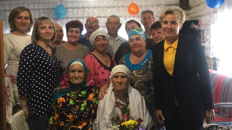 Ветеранны юбилее белән район башлыгы урынбасары Ләйсән Галиева, ветераннар советы рәисе Любовь Сорокина һәм Камай авыл җирлеге башлыгы Инзилә Әглиева котладылар.