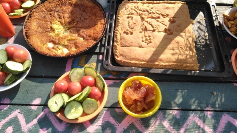 13 август көнне безнең әбиләребез белән Чишмәдә көзге Пирог бәйрәме үткәрелде. Әбиләр уеннарда, конкурсларда актив катнаштылар, көз темасына такмаклар уйлап таптылар, җырлар җырладылар, гөмбә боткасы,пироглар һәм хуш исле чәй белән сыйландылар.