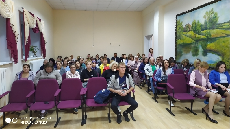 Җыелышта чыгыш ясаучы Мәктәп медицина хезмәткәре Шишкина Н. В.булды, ул гриппны профилактикалау буенча лекция үткәрде. Ул соңгы вакытта грипп белән авыручы кешеләрнең саны артуына аерым игътибар итте, профилактик прививкалар ясарга һәм сәламәт яшәү рәвеше алып барырга чакырды. Һәм ахырда "ТР Юл хәрәкәте куркынычсызлыгы фәнни һәм белем бирү программаларын финанслау дирекциясе" ДКУнең Менделеевск филиалы начальнигы Гимаева Флюра Гарәфетдин кызы чыгыш ясады.