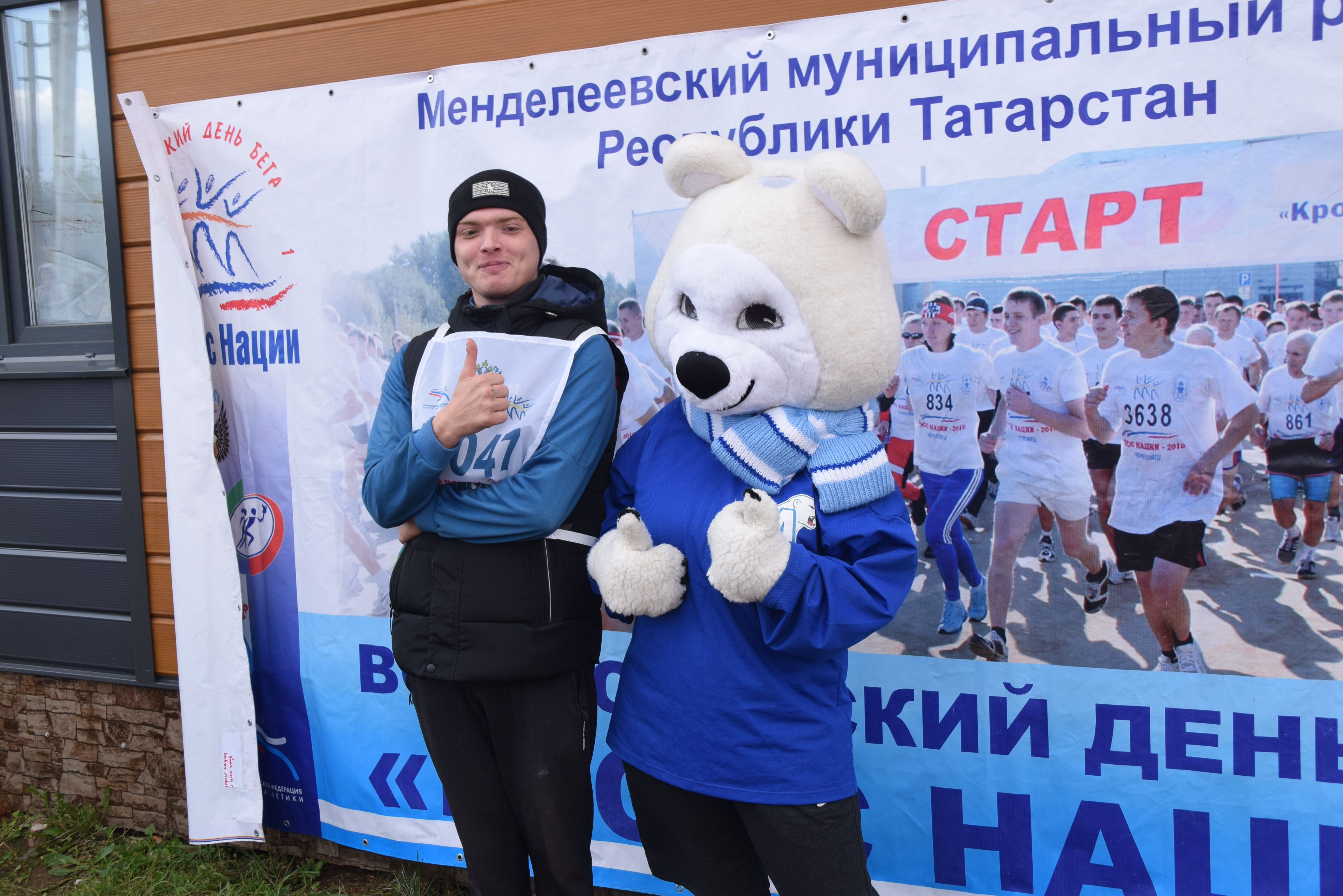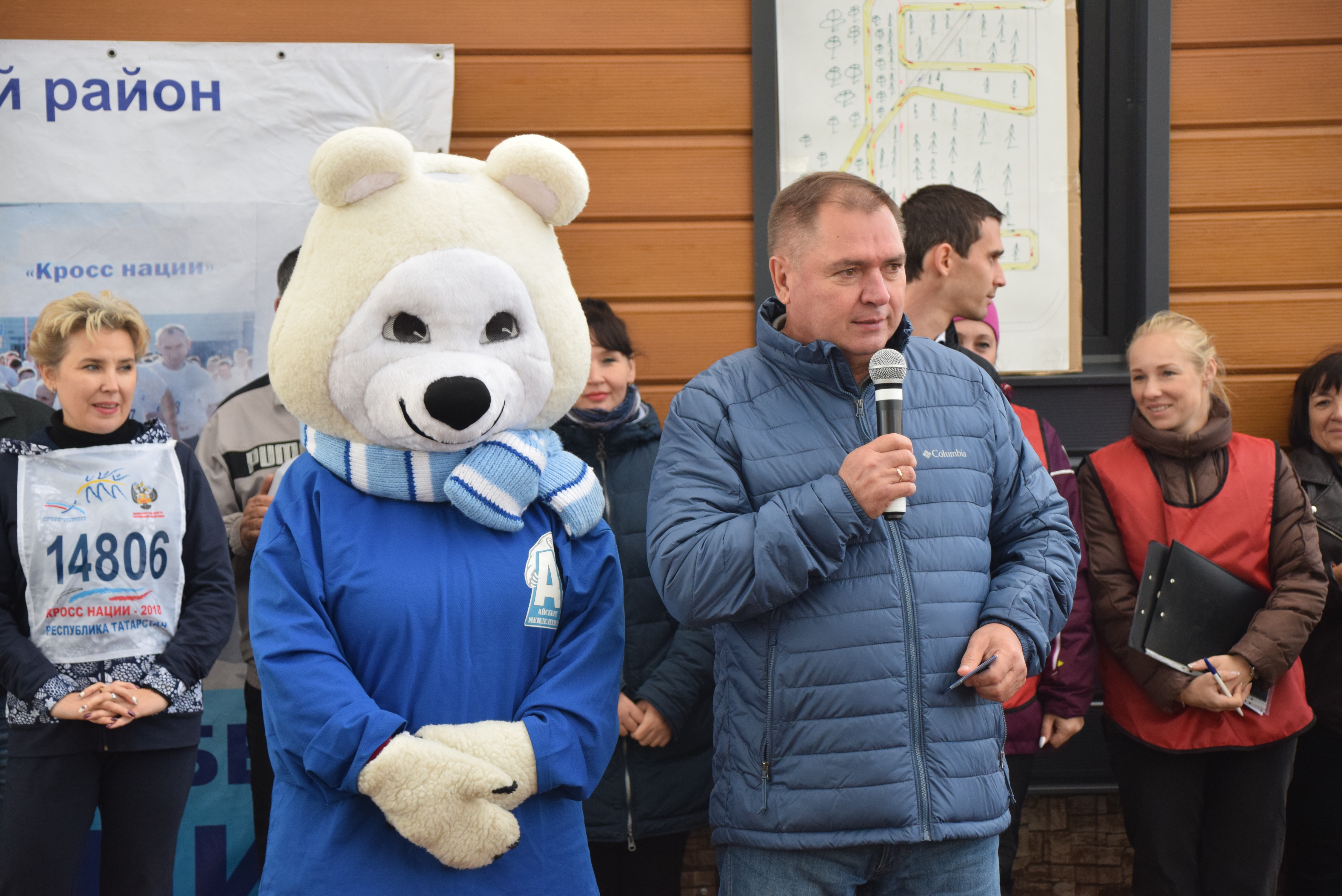 «Татарстан кроссы-2019» йөгерешендә катнашучыларны район башлыгы Валерий Чершинцев сәламләде.
