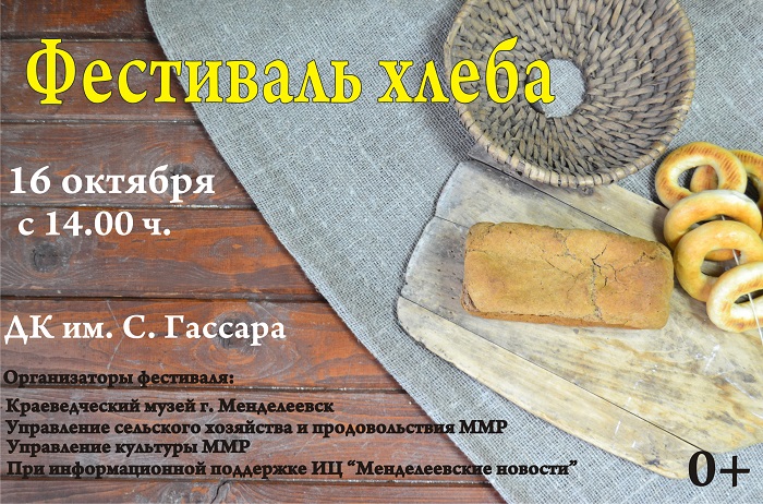 2019 елның 16 октябрендә 14.00 сәгатьтә С.Гассар исемендәге Мәдәният сараенда «Икмәкле Артель» һөнәри юнәлеш проекты кысаларында икмәк фестивале узачак.