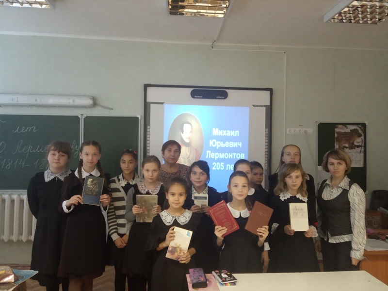Шагыйрьнең тормыш юлы һәм иҗаты турында сөйләү презентация белән үрелеп барды. Балалар Лермонтовның «Җилкән», «Шагыйрь үлеме», «Утес», «Бородино» шигырьләрен дулкынланып укыдылар. Китапханәче Бөек шагыйрьнең иҗатына багышланган китапларга күзәтү үткәрде.