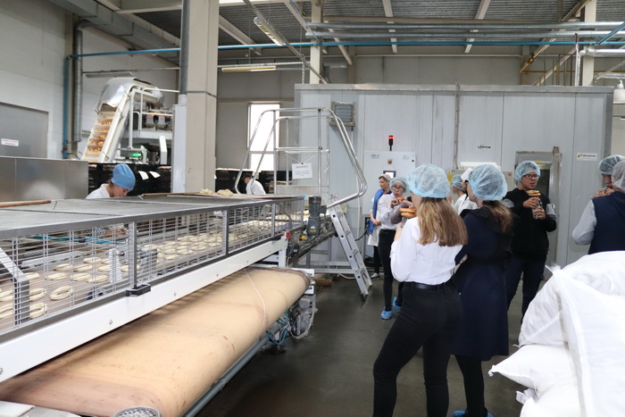 Экскурсия вакытында 2 нче урта мәктәпнең 9 нчы сыйныф укучылары икмәк-булка эшләнмәләрен җитештерү технологиясе үзенчәлекләре турында кызыклы хикәя ишеттеләр. Шулай ук аларга камырны катыштыра һәм пешерә торган җитештерү линияләрен күрсәттеләр.
