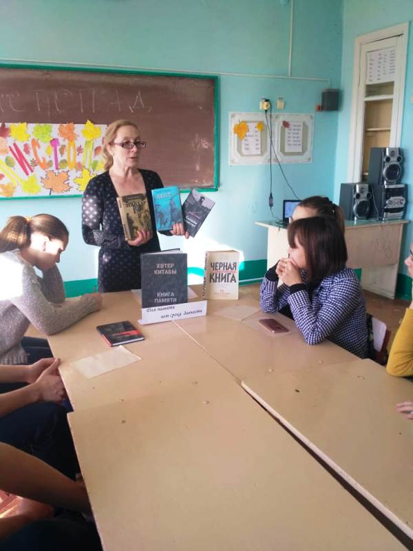 Китапханәче Галимуллина Г.М. укучыларга репрессия корбаннары, бу елларның фаҗигасе турында сөйләде, китап күргәзмәсе белән таныштырды. Бу көн сәяси репрессияләрдән зыян күрүчеләр өчен кайгы көне булса, яшь буын өчен – безнең катлаулы тарихны танып белү көне булсын иде.
