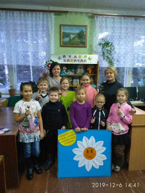 Китапханәче иң элек балаларга “Яхшылык белән Явызлык” турындагы әкият сөйләп тормышта аралашуның иң гади ысулын аңлатты: кешеләрдән нинди мөгаләмә көтсәң, үзең аларга шул мөгаләмәдә бул! Аннары балалар мәрхәмәтлелек турында мәктәп укучылары тормышыннан алынган видео һәм “Просто так” дигән мультфильм карап үттеләр, сынмас рухлы язучылар белән таныштылар, мөмкинлекләре чикләнгән кешеләр белән аралашу өчен үзеңдә нинди сыйфатларны тәрбияләргә икәнен саный-саный ромашка чәчәге ясадылар. Үткәрелгән чарадан канәгатъ калган укучылар соңыннан өйгә китаплар яздырып алдылар.